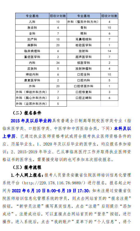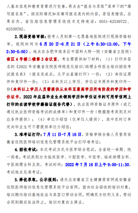 以上就是“中国科学技术大学附属第一医院(安徽省立医院)2022 年住院医师规范化培训招生简章”的全部内容,由医学教育网小编整理,希望对您有所帮助!想要了解更多关于住院医师规范化培训考试相关政策,请继续关注此栏目!