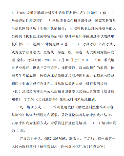 推荐阅读:安徽省2022年住院医师规范化培训招生人数及招生简章汇总