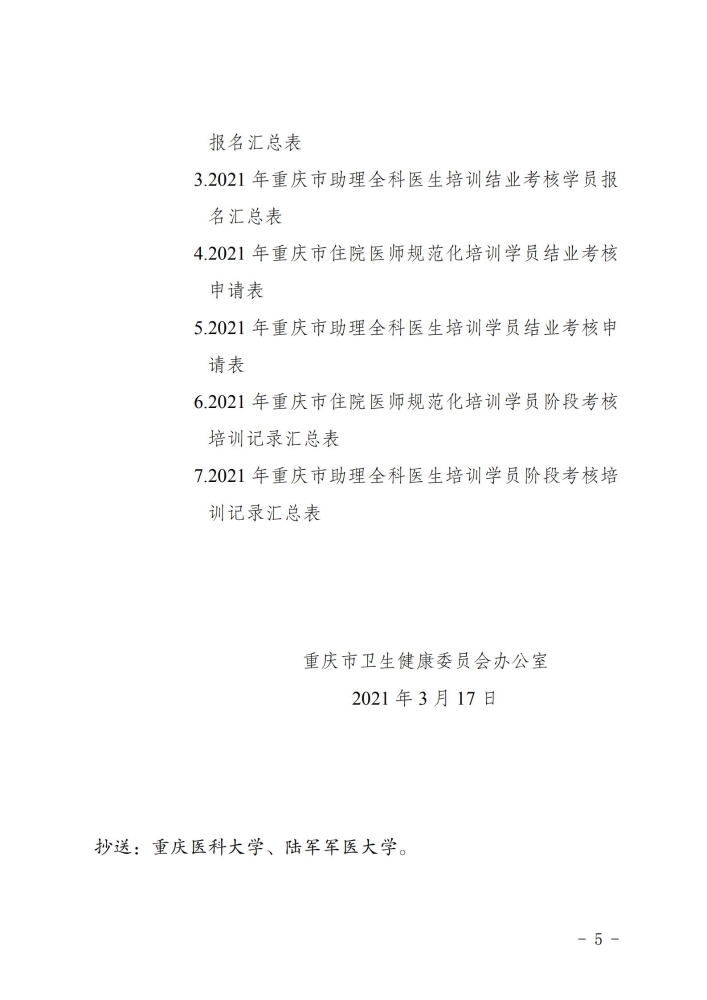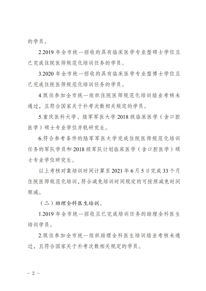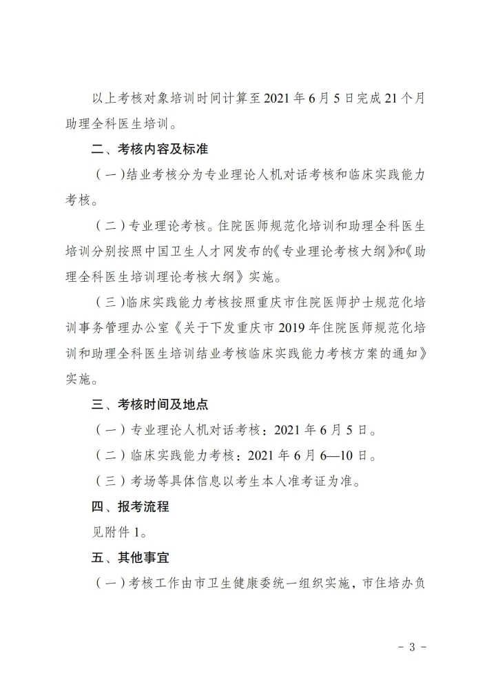 关于开展2021年重庆市住院医师规范化培训和助理全科医生培训结业考核的通知