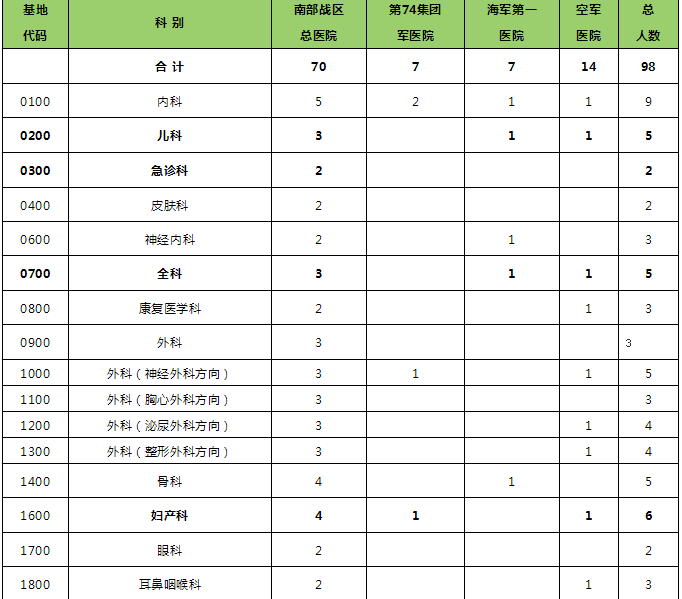 2020年南部战区总医院住院医师规培招生计划: