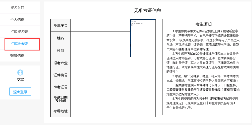(1)分配考场后可打印准考证,点击【打印报名表】进入核对界面,检查考生准考证信息无误,点击【打印】即可。
