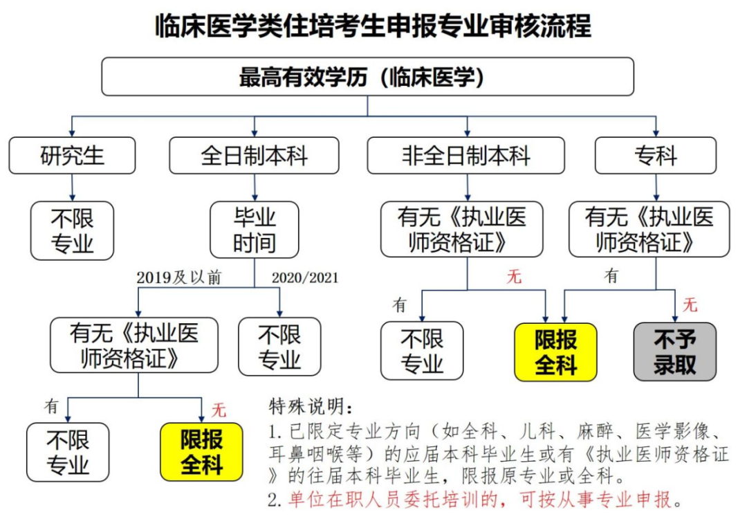 2、临床医学本科专业已限定专业方向的本科毕业生(如检验医学、麻醉学、放射、超声医学等),申报专业限定为原本科专业或全科医学科。