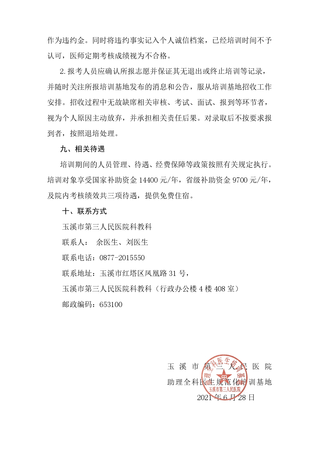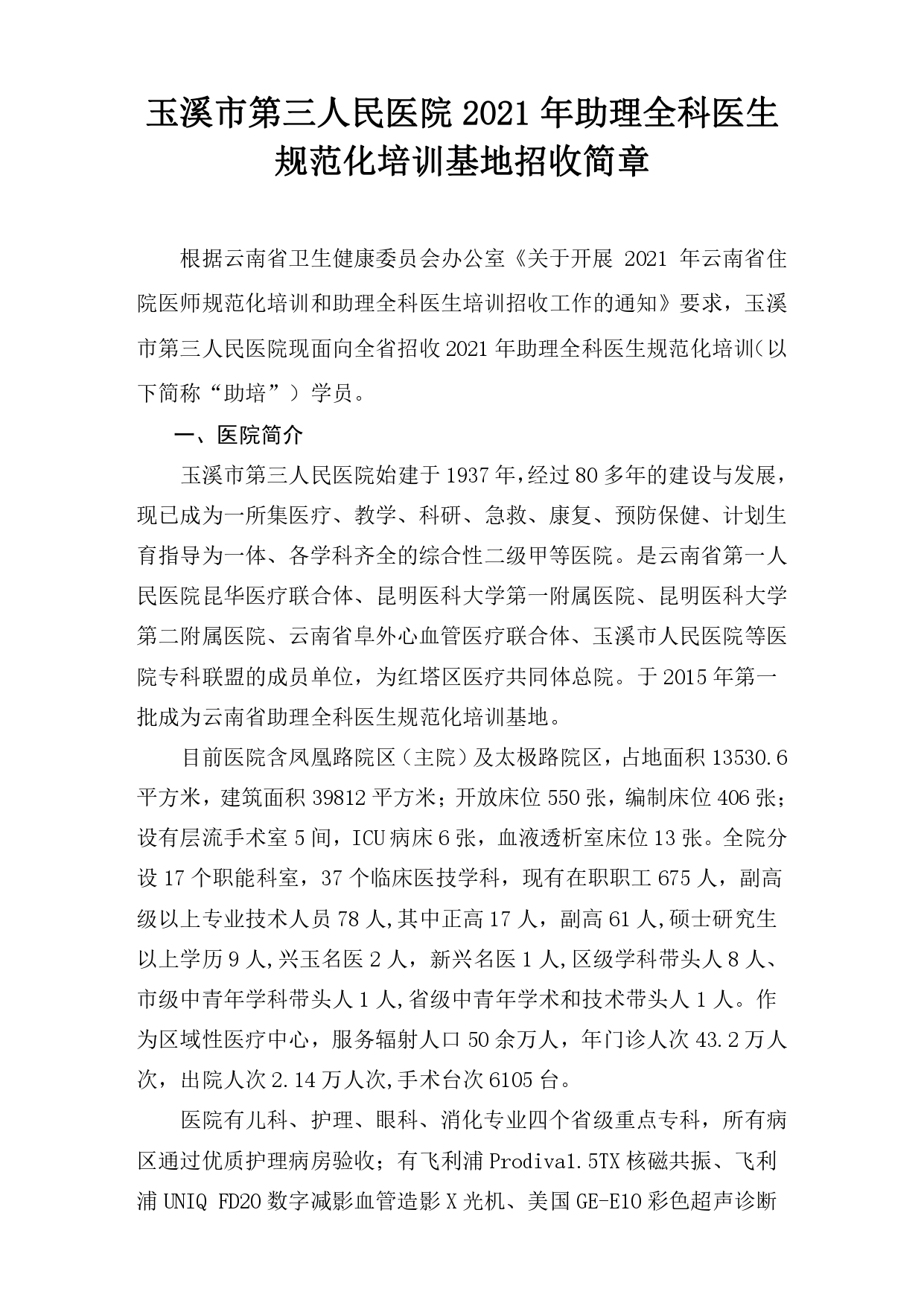 培养高质量住培医师是医院未来发展的核心动力!近日,“玉溪市第三人民医院”发布了“2021年玉溪市第三人民医院助理全科医生规范化培训基地招收简章”,正在考虑参加住培的考生们千万不要错过!具体内容如下: