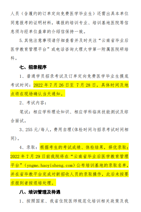 以上就是“大理大学第一附属医院2022年住院医师规范化培训基地第二批招录通知”的全部内容,由医学教育网小编整理,希望对您有所帮助!想要了解更多关于住院医师规范化培训考试相关政策,请继续关注此栏目!
