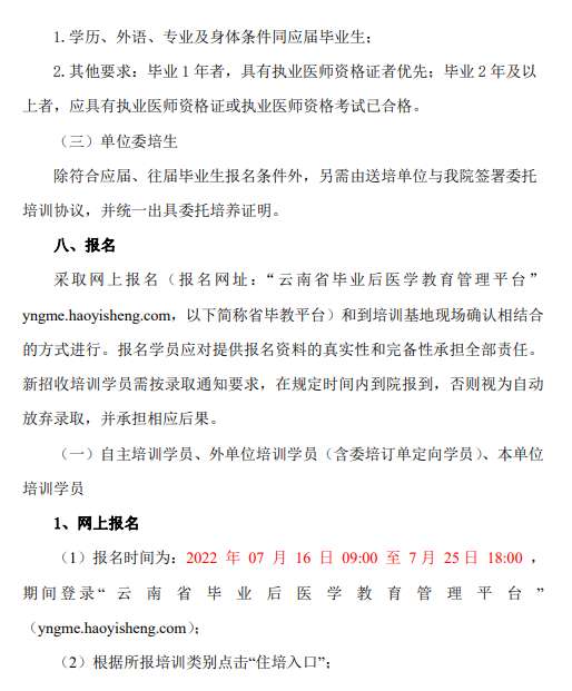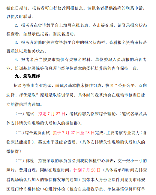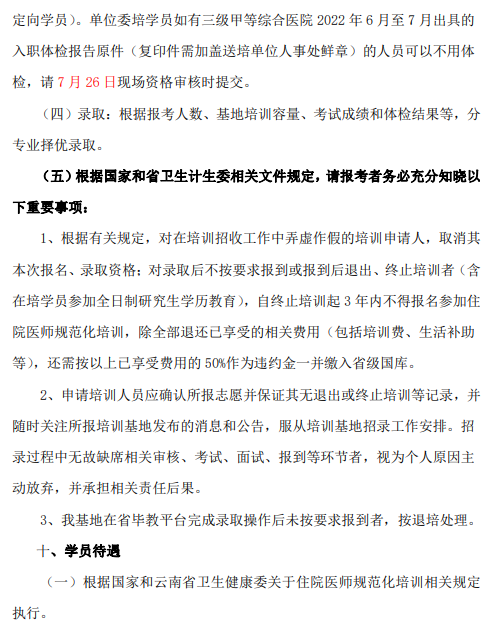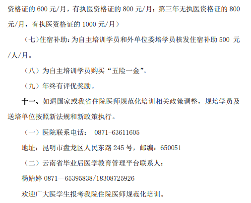 以上就是“昆明市延安医院第二批次2022年国家住院医师规范化培训基地招生简章”的全部内容,由医学教育网小编整理,希望对您有所帮助!想要了解更多关于住院医师规范化培训考试相关政策,请继续关注此栏目!