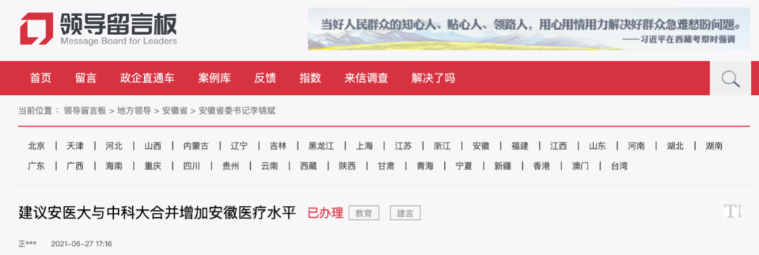 因此,我省目前没有将中国科学技术大学与安徽医科大学合并的意向和规划。