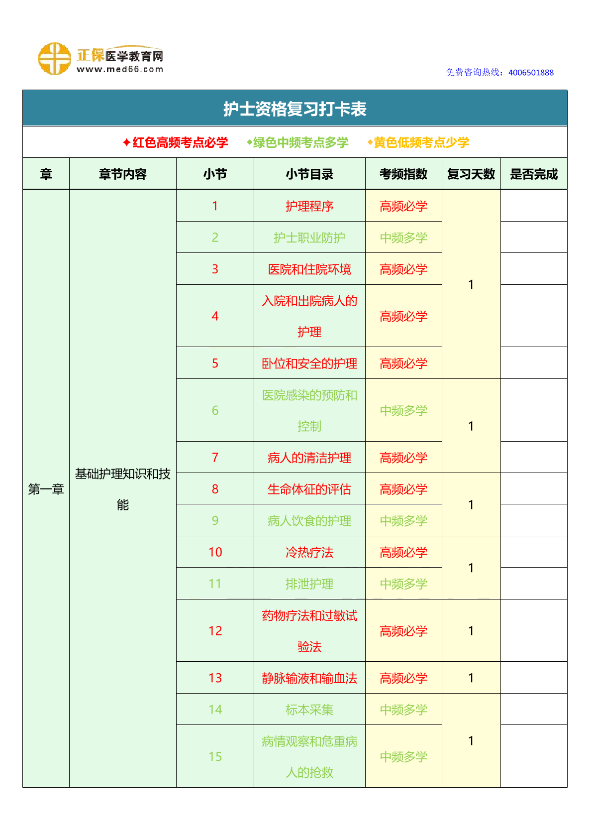 2026年护士资格《复习打卡表》