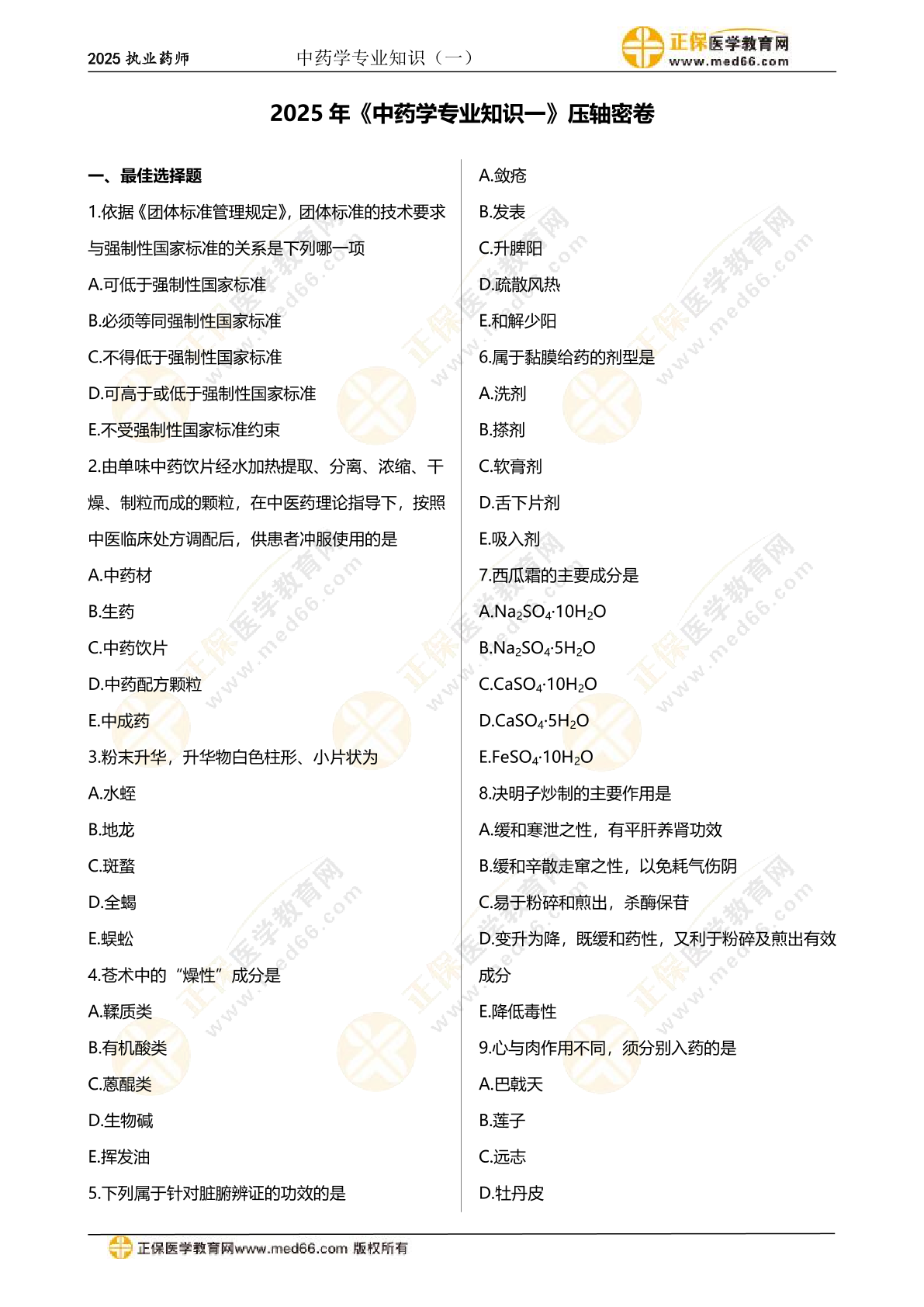 2025《中药学专业知识一》压轴密卷
