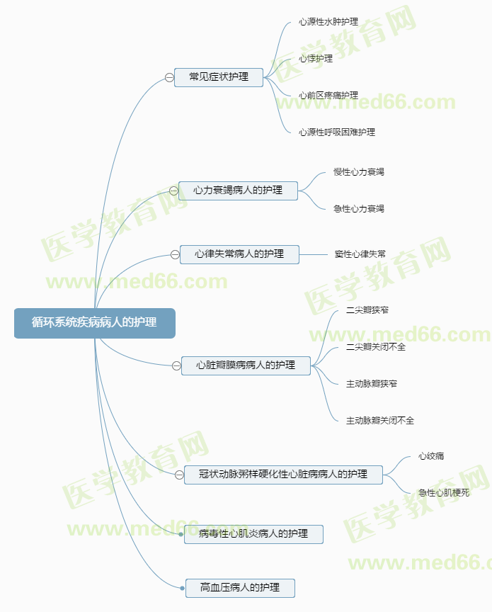 以上关于“【考点归纳】循环系统疾病病人的护理思维导图”的文章由医学教育网小编整理搜集,希望可以帮助到大家,更多2022初级护师考试热点资讯请随时关注医学教育网卫生资格栏目!