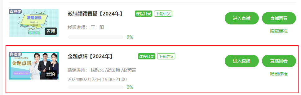 (2)初级药士<金题点睛>为直播课程,提供回放,错过直播的考生可以观看课程回放。