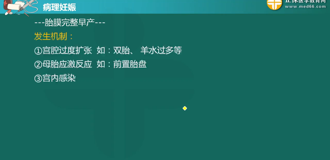 2.胎膜早破早产--- 37周前破膜所诱发的早产。