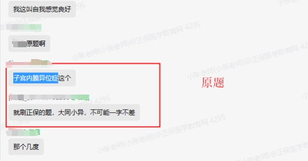 2024年妇产科主治医师考试已经开考,网校接到很多学员反馈,表示有很多原题,就刷正保的题!大同小异的原题!快跟小编一起看看吧~