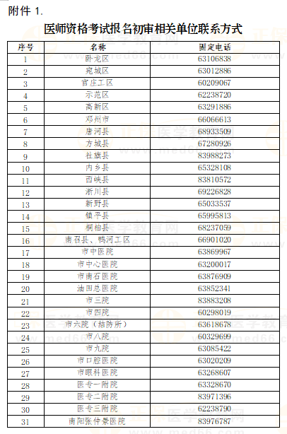1.医师资格考试报名初审相关单位联系方式