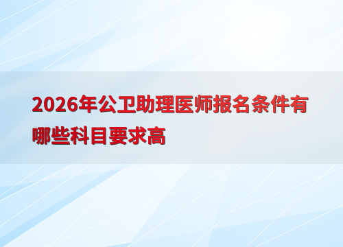 2026年公卫助理医师考试报名预计在1-2月进行,考生需满足学历和试用期要求。