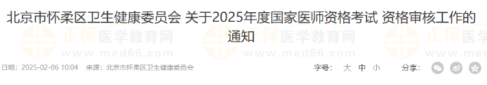 要求社保!北京怀柔区2025年医师资格考试报名审核通知已出。请相关考生及时查看官方通知要求,按时参与报名审核。