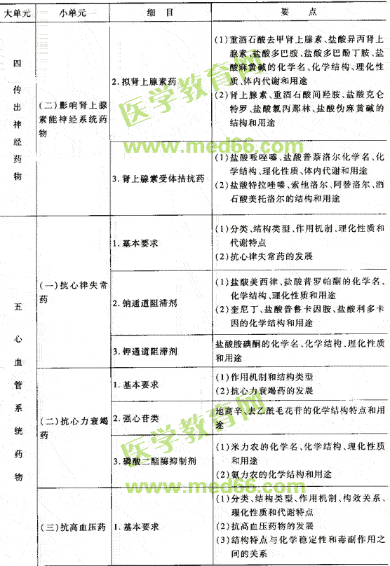 药物化学考试大纲