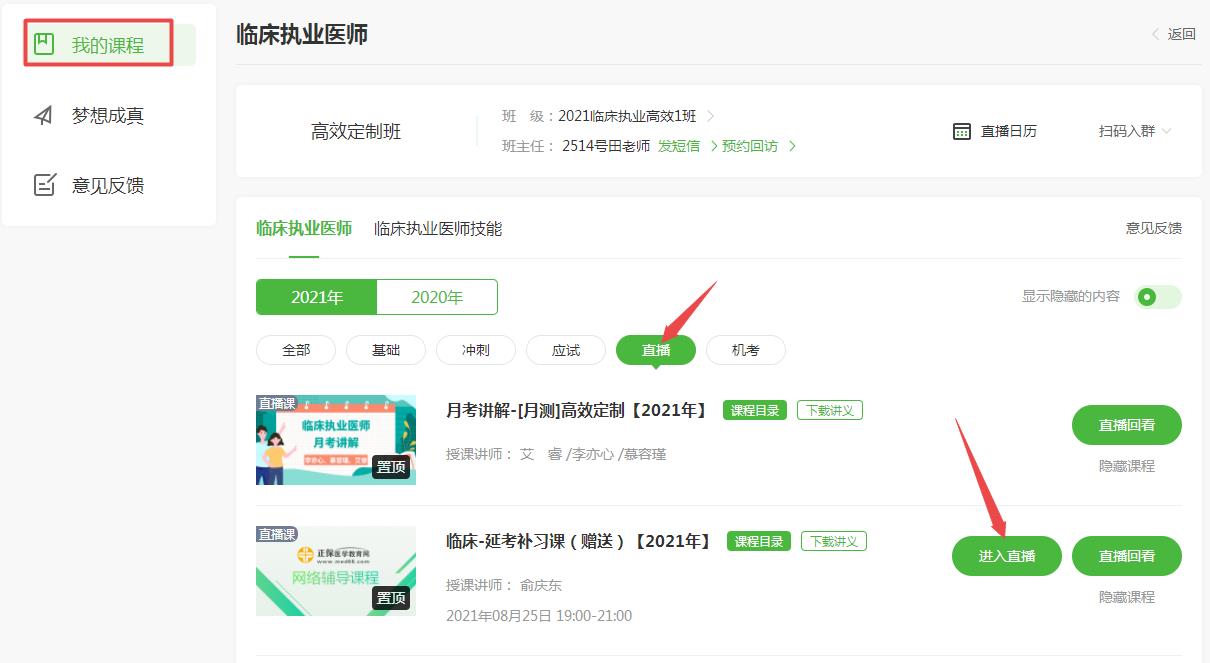 【课程安排】2021年临床执业/助理医师高效定制班/面授旗舰班直播课已开通!