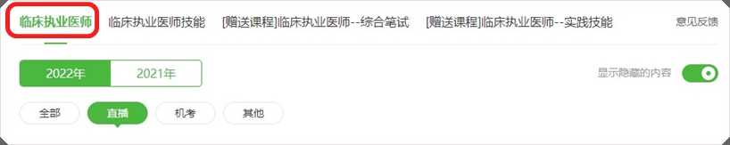 3、点击底部菜单“学习”,进入“我的课程”点击“临床执业医师”进入课前导学直播课页面: