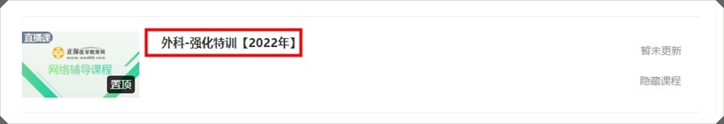 点击“外科-强化特训”,进入直播入口,直播开始前,截图所示位置会更新直播入口:
