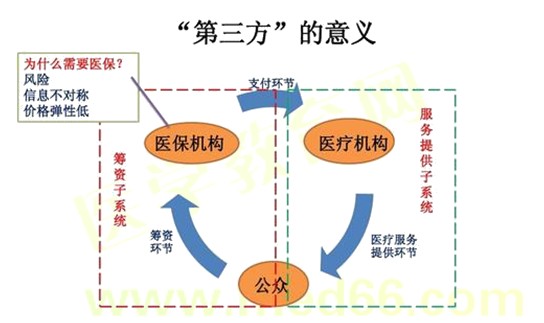 第三方付费制度是医疗保险机构作为付款人,代替被保险人支付他们因医疗服务所发生的医疗费用,对医疗机构提供医疗服务所消耗的经济资源进行补偿。