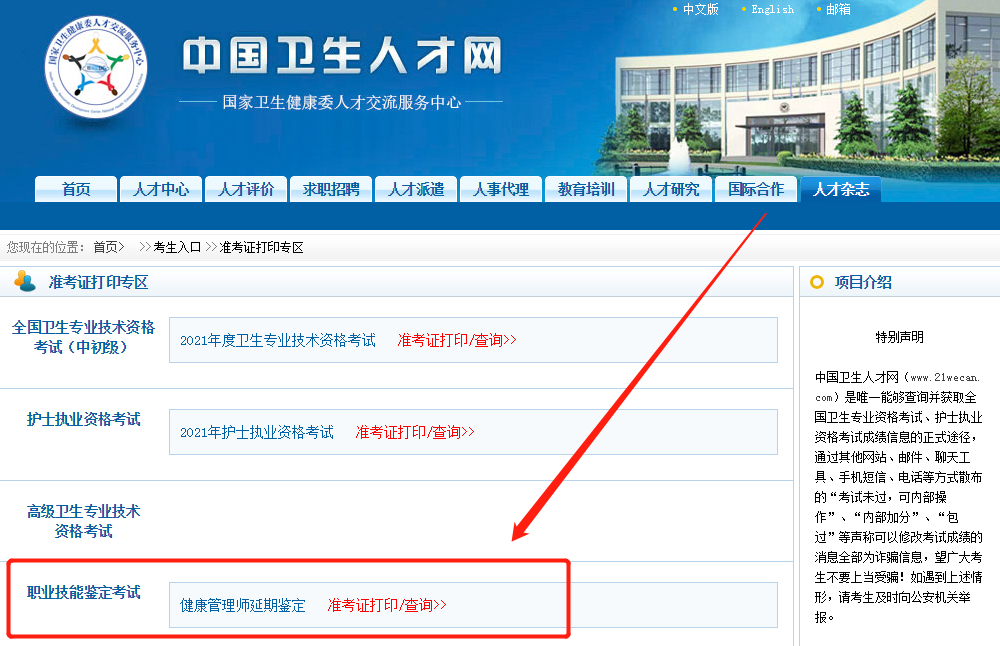 健康管理师延期鉴定准考证打印入口: