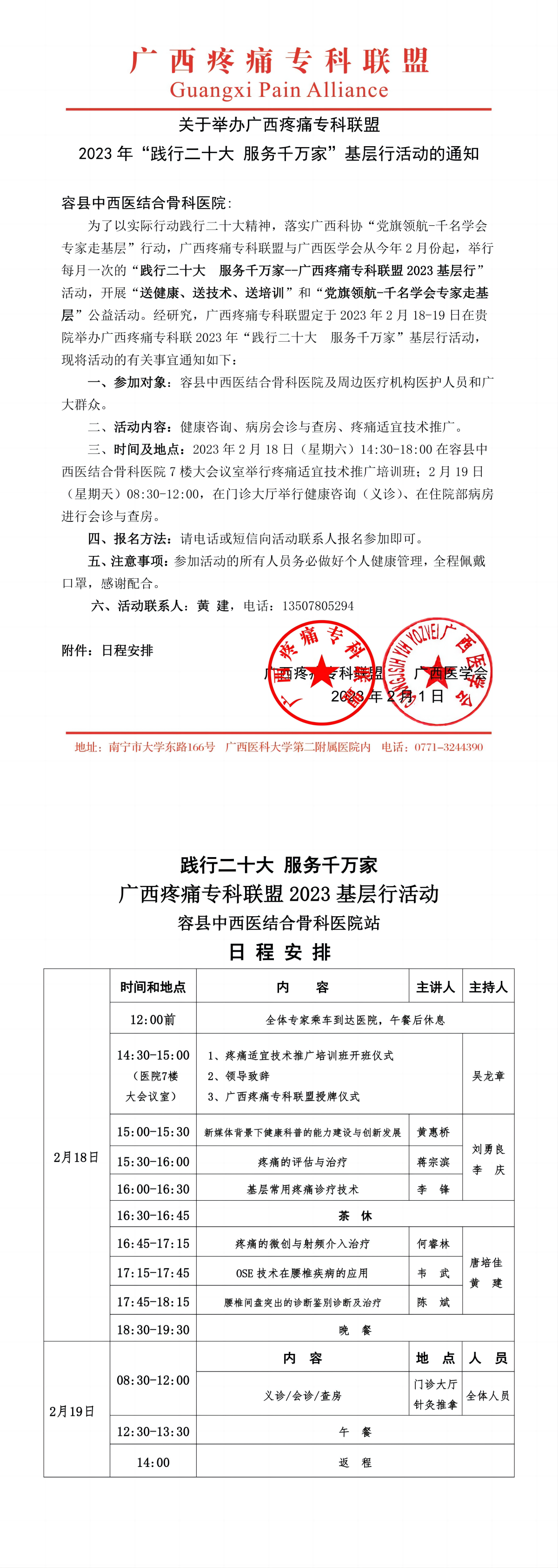 以上就是小编为大家整理的关于举办广西疼痛专科联盟2023年“践行二十大 服务千万家”基层行活动的通知,想了解更多有关继续医学教育、考试培训等相关优质资讯还请多多关注医学教育网!