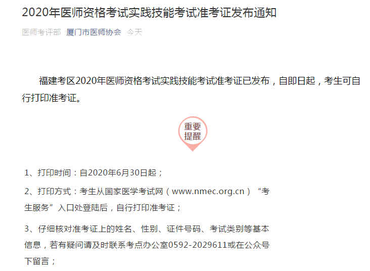 2020年福州鼓楼考点口腔执业医师实践技能准考证打印及温馨提示!
