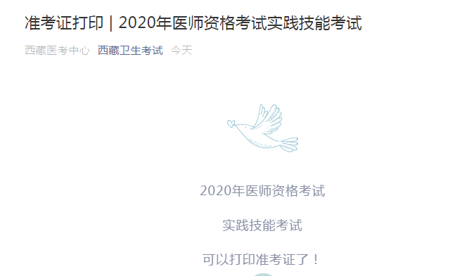 西藏考区2020年口腔执业医师实践技能准考证打印开通时间现已公布!