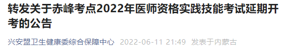 兴安盟卫生健康委综合保障中心转发关于赤峰考点2022年医师资格实践技能考试延期开考的公告,医学教育网老师为大家整理总结如下,希望可以帮助到各位:
