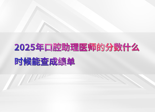 2025年口腔助理医师综合考试成绩预计在9月公布,参考近年数据,一般考后1个月左右可查。