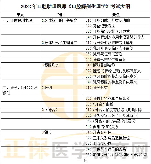 2025年口腔助理医师考试《口腔解剖生理学》考试大纲免费下载