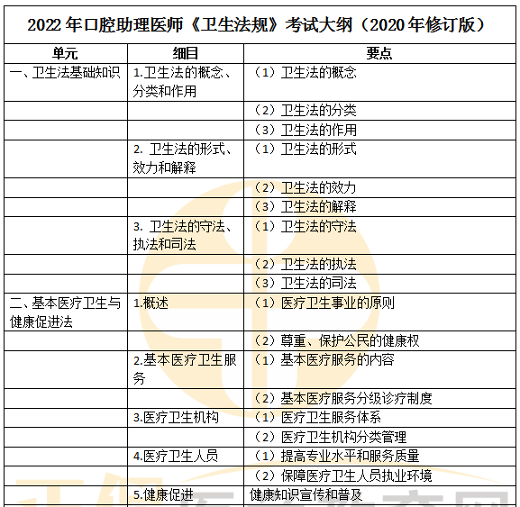 2025年口腔助理医师考试《卫生法规》考试大纲免费下载