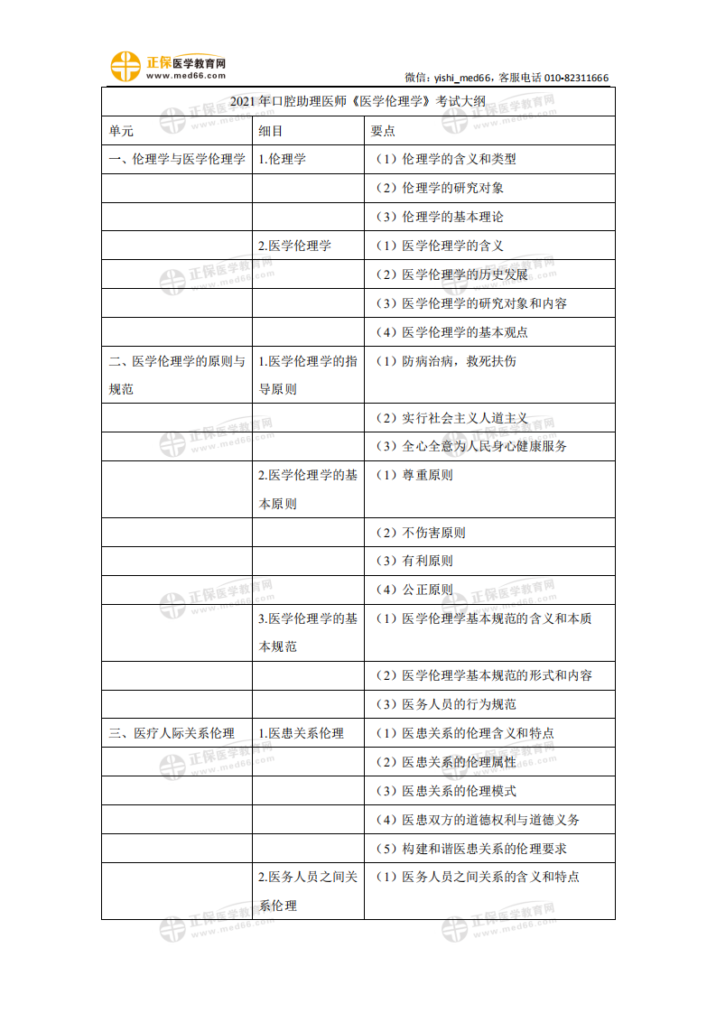 “2021年口腔助理医师《医学伦理学》考试大纲下载”的内容,由医学教育网编辑整理,更多口腔助理医师考试复习资料、考试动态、学习经验技巧,敬请关注医学教育网口腔助理医师栏目。