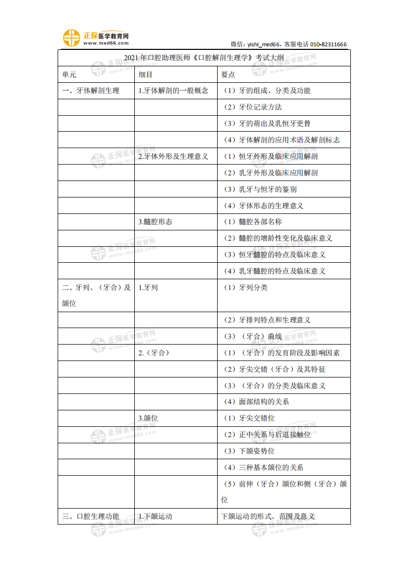 附件下载: 2021年口腔助理医师《口腔解剖生理学》考试大纲