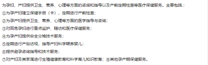 ②为孕产妇提供卫生、营养、心理等方面的医学指导与咨询服务;