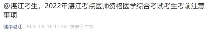 关于“广东湛江考点2022年口腔助理医师资格综合笔试考场安排及考生须知”通知由医学教育网小编整理发布,更多医师资格考试相关动态请持续关注医学教育网!