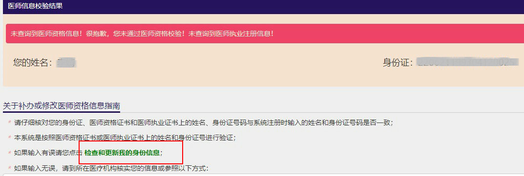 以上“2022医师信息校验显示未查询到医师资格信息怎么办?”的内容,由医学教育网编辑整理搜集,希望对想要了解相关问题的人提供参考。