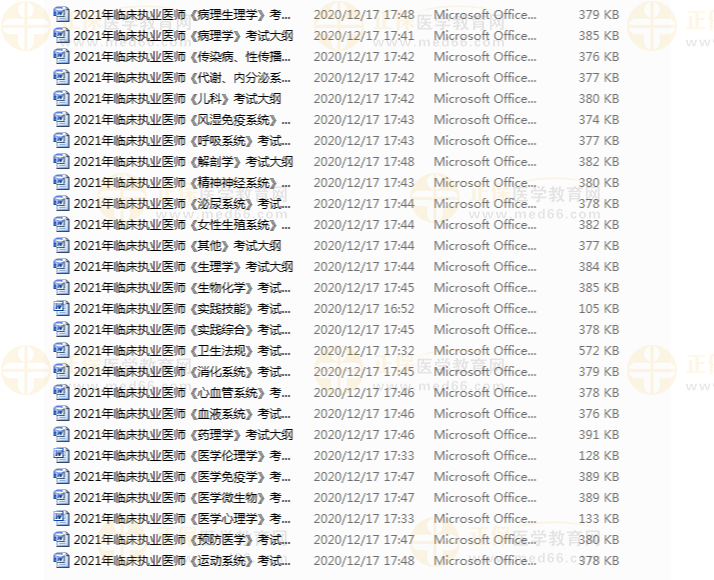 以上关于“【考纲汇总】2021年国家临床执业医师证各科目大纲细则”的内容由医学教育网编辑整理搜集,希望可以帮助到大家,更多的文章随时关注医学教育网临床执业医师考试大纲栏目!