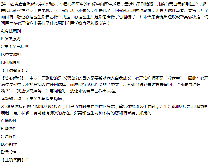 关于“2020年临床执业医师笔试考试第一单元A2题练习附答案解析(五)”的内容,相信很多临床执业医师考生都在关注,医学教育网老师为大家整理了具体的题目及答案解析,详情如下,本期更新第一单元A2题21-25题的内容: