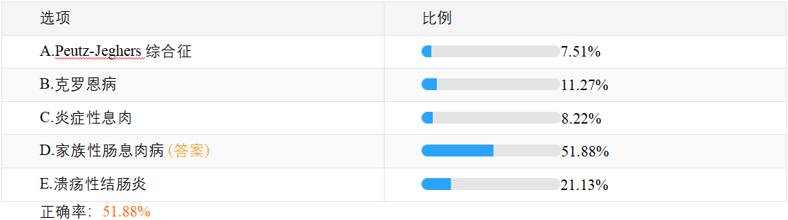 关于“临床执业医师笔试摸底测试题:最易演变成结肠癌的疾病是?”的相关内容,相信很多正在备战2023年临床执业医师考试的考生十分关注,此题在摸底测试50题(点击参加测试>>)中正确率仅为51.88%,建议大家及时复习,牢固掌握相关知识点!