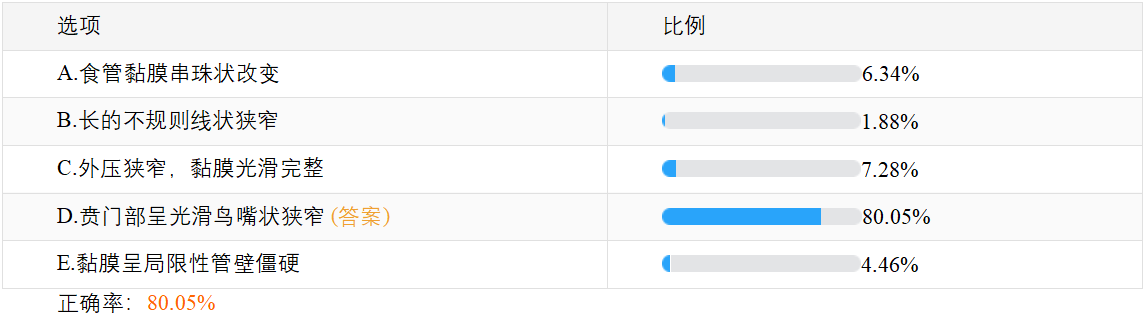 关于“关于贲门失弛缓症的X线表现描述正确的是?”,相信很多正在备战2023年临床执业医师考试的考生十分关注,此题在摸底测试50题(点击参加测试>>)中正确率仅为80.05%,建议大家及时复习,牢固掌握相关知识点!