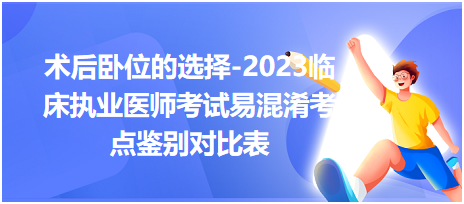 2023年临床执业医师考试有一定难度,但基础扎实,多思考、总结、结合实际生活进行学习,也能学好!今天主要为大家整理了术后卧位的选择-2023临床执业医师考试易混淆考点鉴别对比表,让你在平时复习的同时,更好地吸收和巩固相关知识点。持之以恒,让你每天都有进步!