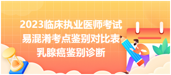 为帮助参加2023年临床执业医师的考生笔试考前冲刺,医学教育网小编为大家整理各单元高频考点速记内容,以下为“乳腺癌鉴别诊断-2023临床执业医师考试易混淆考点鉴别对比表”,希望可以帮到大家: