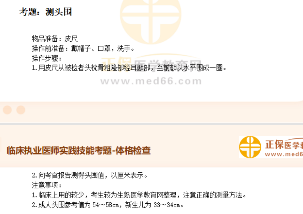 以上关于“测头围的操作步骤及注意事项——临床执业医师体格检查历年考点”的文章由医学教育网编辑整理搜集,更多的文章随时关注医学教育网临床执业医师实践技能辅导精华栏目,医学教育网也为广大考生提供视频讲解,可以点击这里了解班次>>
