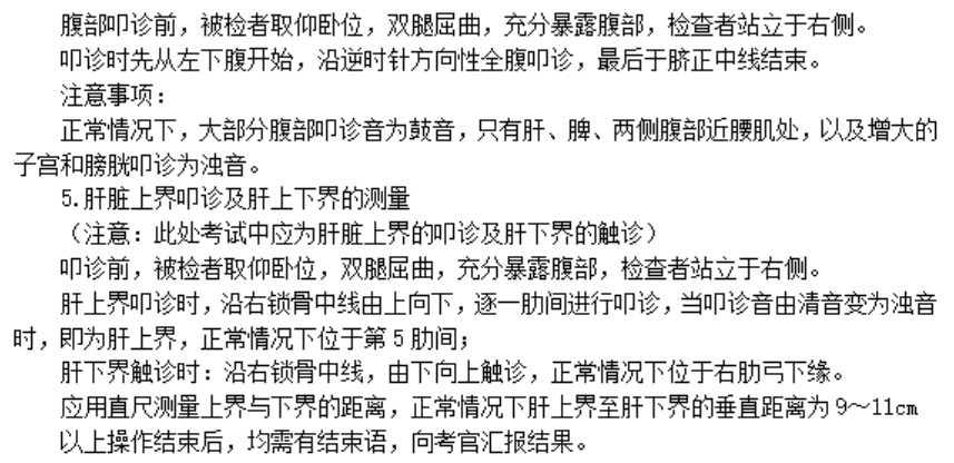 以上关于“腹部叩诊操作步骤及注意事项——临床医师体格检查历年考点”的文章由医学教育网编辑整理搜集,更多的文章随时关注医学教育网临床执业医师实践技能辅导精华栏目,医学教育网也为广大考生提供视频讲解,可以点击这里了解班次>>