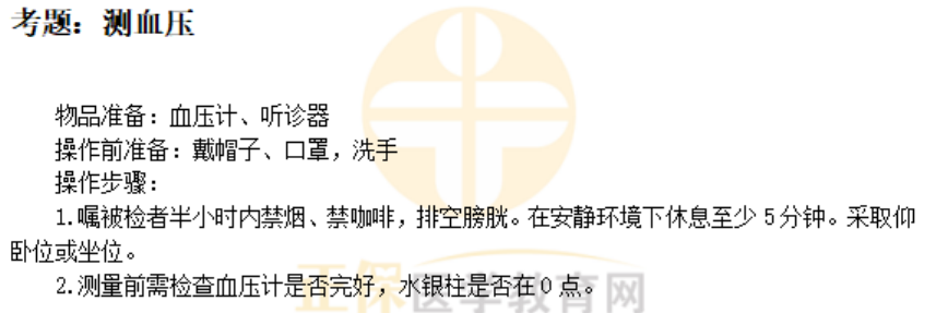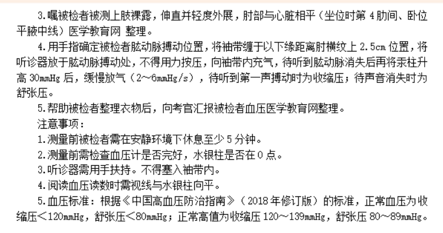 以上关于“测血压的操作步骤及注意事项——临床执业医师体格检查历年考点”的文章由医学教育网编辑整理搜集,更多的文章随时关注医学教育网临床执业医师实践技能辅导精华栏目,医学教育网也为广大考生提供视频讲解,可以点击这里了解班次>>