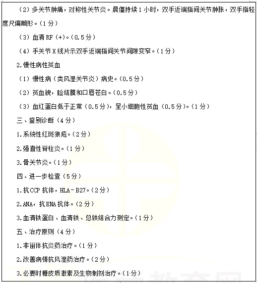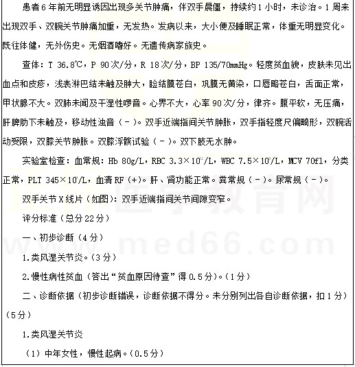 类风湿关节炎考点例题:女性,45岁。反复多关节肿痛6年,加重伴乏力1周。2022年临床医师实践技能考试正在进行中,医学教育网编辑预祝各位考生顺利参考,取得好成绩!