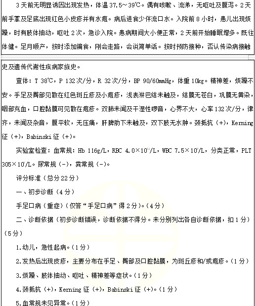 手足口病考点例题:女孩,1岁1个月。发热3天,皮疹2天。2022年临床医师实践技能考试正在进行中,医学教育网编辑预祝各位考生顺利参考,取得好成绩!