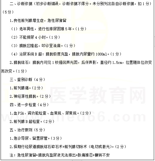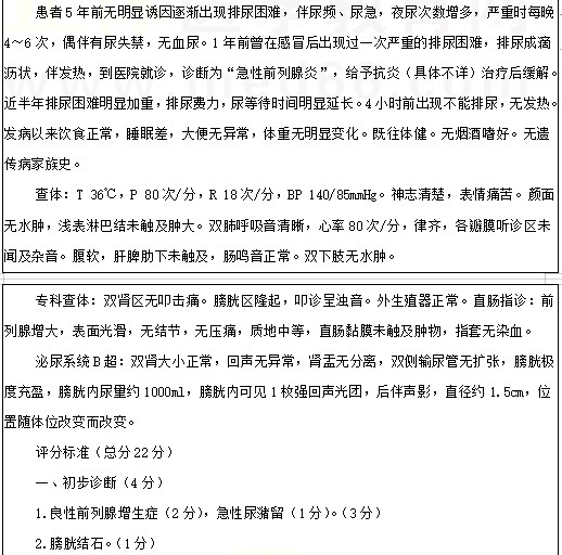 膀胱结石和前列腺肥大考点例题:男性,75岁。进行性排尿困难5年,不能排尿4小时。2022年临床医师实践技能考试正在进行中,医学教育网编辑预祝各位考生顺利参考,取得好成绩!