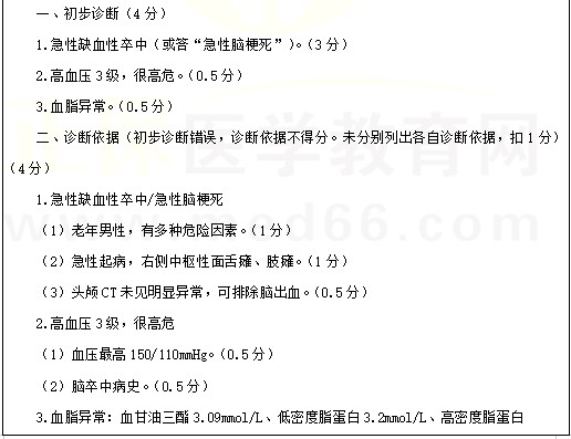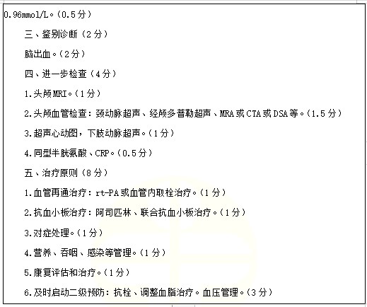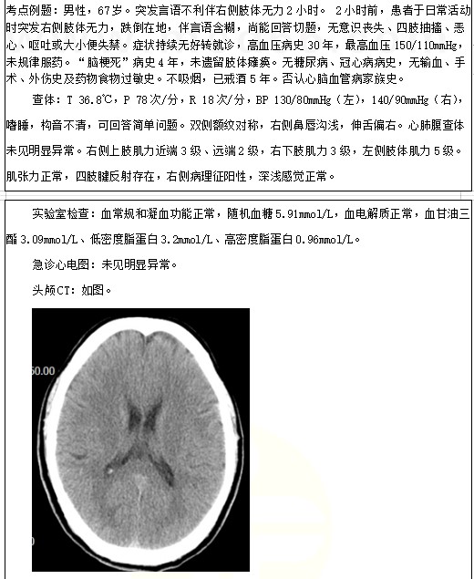 考点例题:男性,67岁。突发言语不利伴右侧肢体无力2小时。
